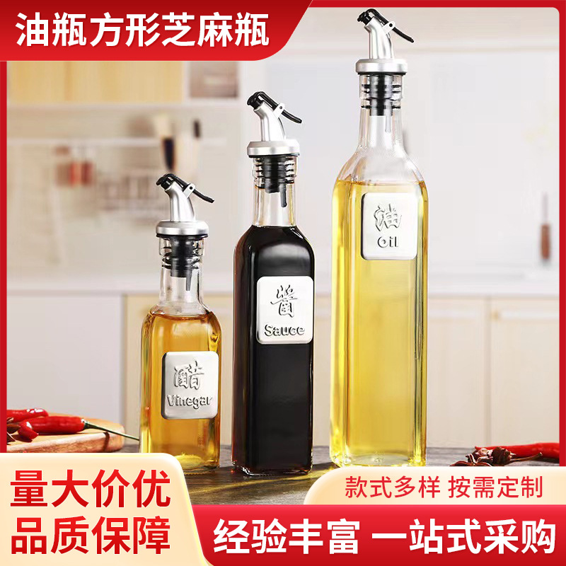 油の瓶の四角形のゴマの油の壺の卸売りの台所のガラスの調味料の酢のガラスのガラス瓶のオリーブの油の瓶の酒