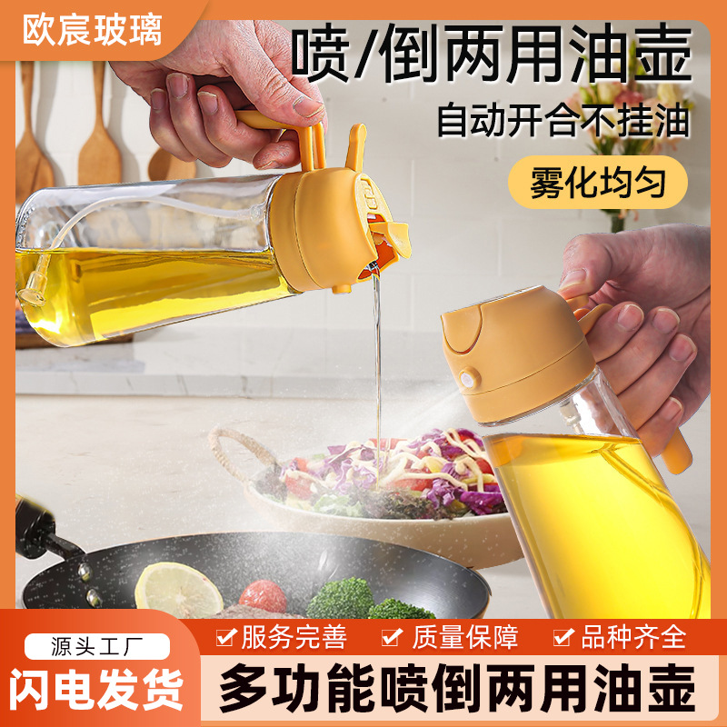 470mlガラス溶射両用オイルポット家庭用大容量オイルボトル台所押圧式オイルをかけない霧化オイルポット