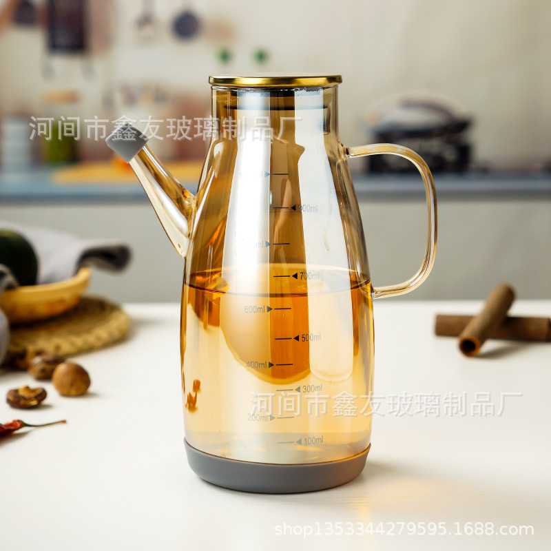 キッチンガラスオイルポット大容量漏れ防止オイルボトル重力自動開閉オイルポット家庭用醤油酢調味料オイルポット