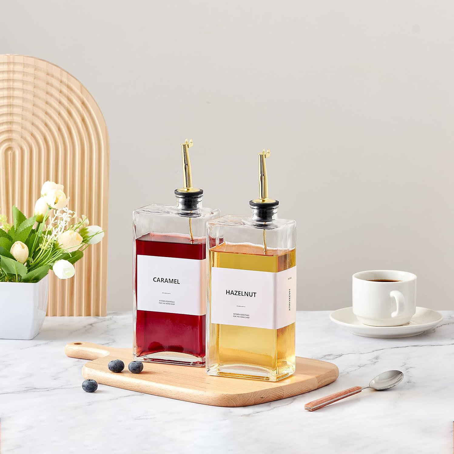 アマゾンガラス瓶12オンス晶白料350ml調味料汁油と酢分配器オリーブ油瓶