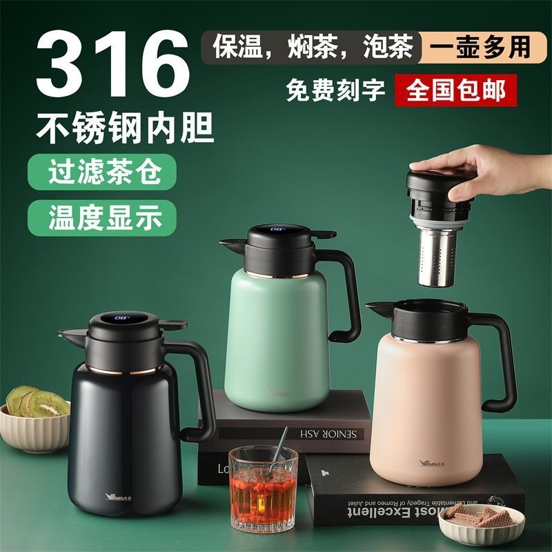 316ステンレス保温ポット大容量蒸し器茶水分離泡ポット携帯保温瓶家庭用保温ポット