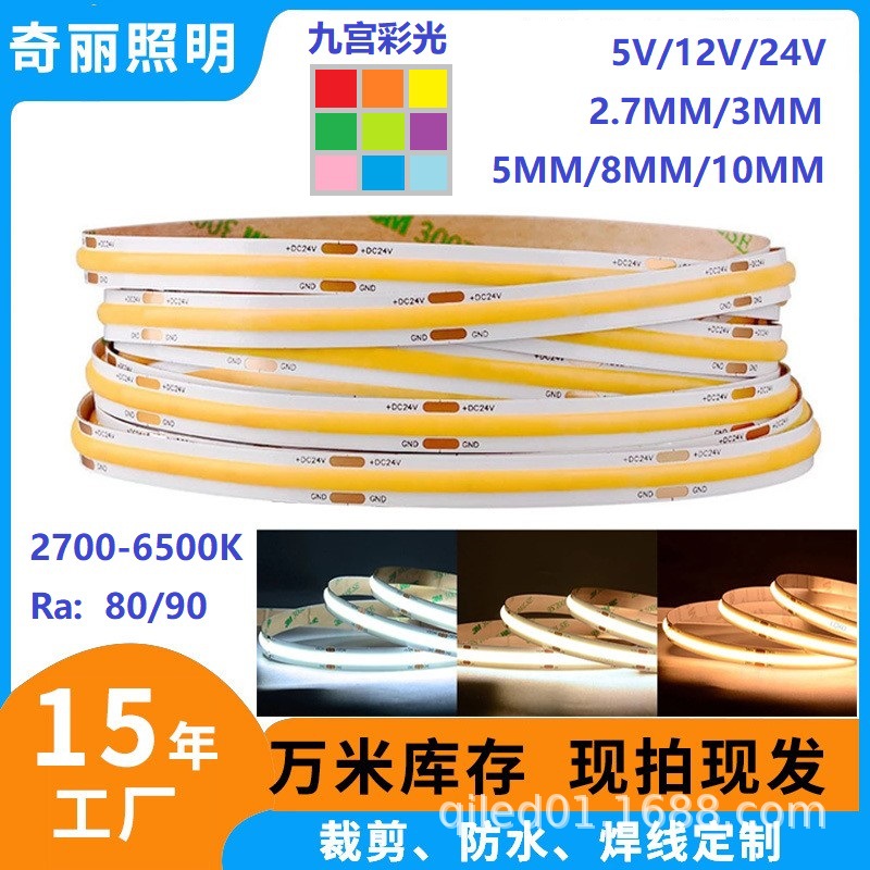 COB灯带3 5 8mm自粘5V12V24V低压超细亮单色软灯条家装led线性灯