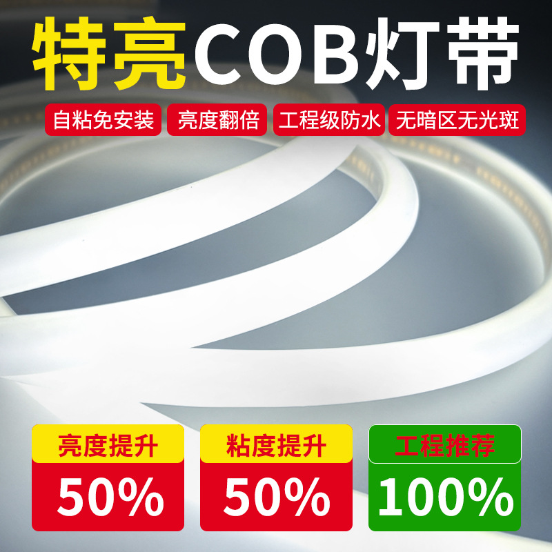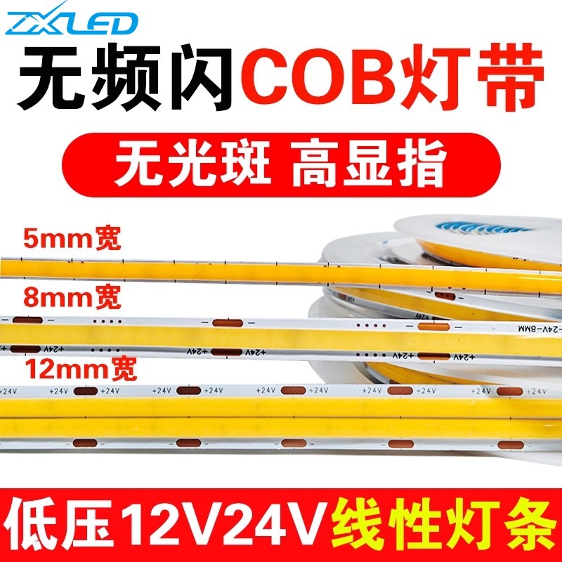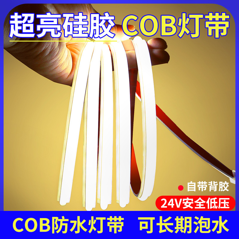 LED線形COBランプ帯12V24V低圧RGB七彩ハイライト自己貼り付けシリコン1ランプ1カット5M10メートル巻