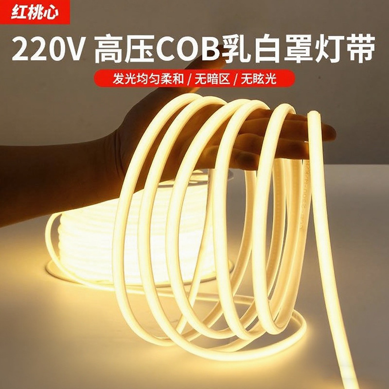 cob ライトストリップ家庭用 LED シリコーン超薄型 220v 防水柔軟な屋外高電圧自己粘着ライトストリップ雰囲気ソフトライトストリップ