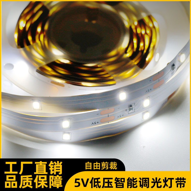 5mmランプ付きリニアソフトランプ付き24v無偏光調光自己接着2色温度インテリジェント変光cob低圧ランプ付き