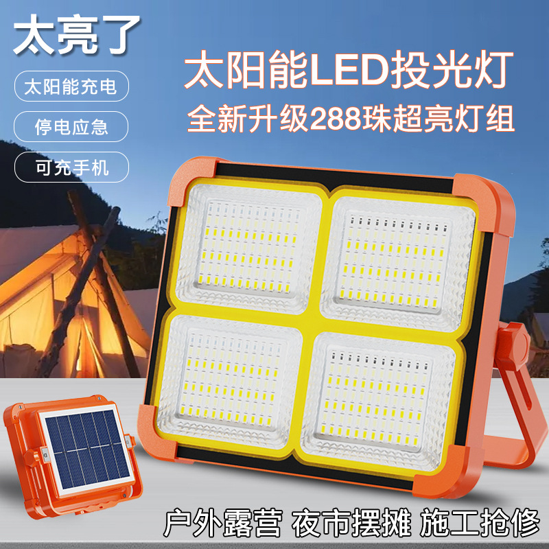 LED ソーラー投光器 4 グリッド屋外防水キャンプライト夜市屋台非常灯照明スポットライト