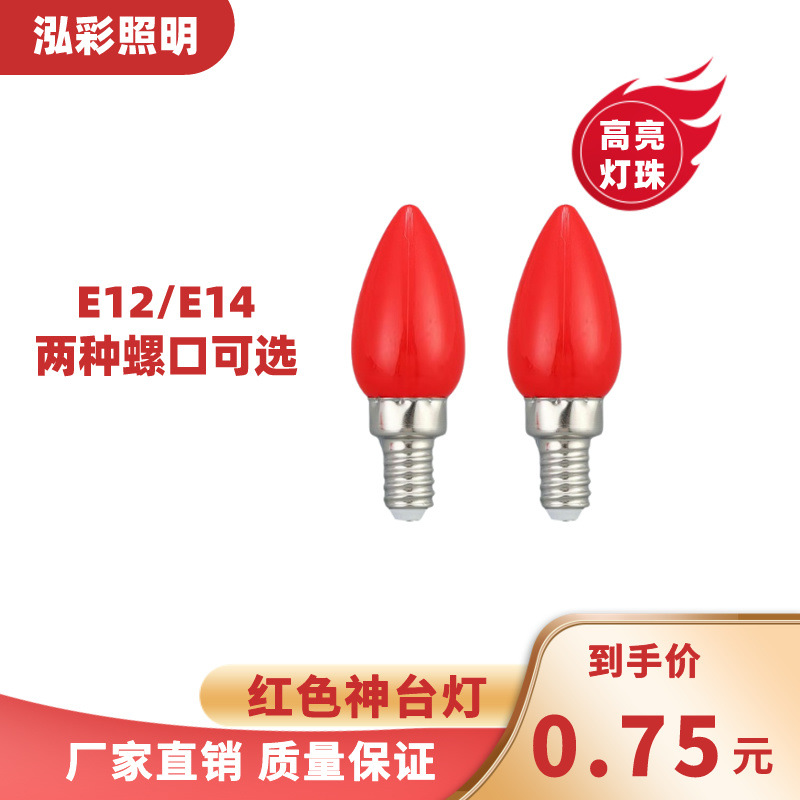 Led神台電球e14 e12赤いろうそく神仏灯財神灯尖泡仏珠装飾灯赤灯