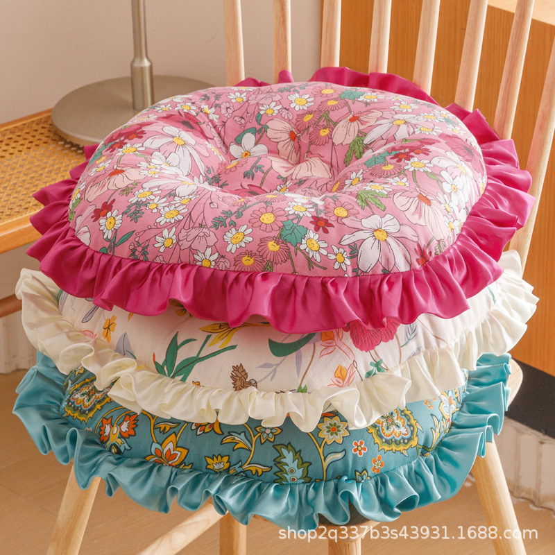 花柄綿麻エスニック風丸椅子クッション 学生 家庭用 両面畳マット 厚手タイプ