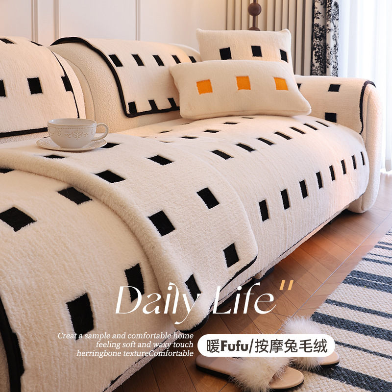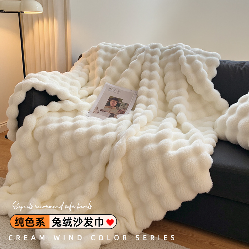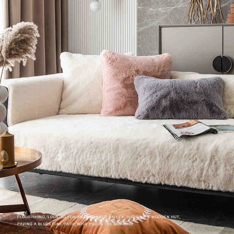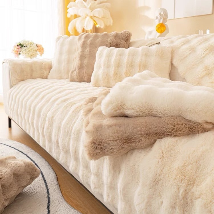 クリーム風2025新作ウサギ毛ぬいぐるみ風ネット人気ソファカバー滑り止めソファカバー猫の引っ掻き傷防止クッション毛布