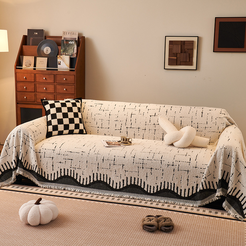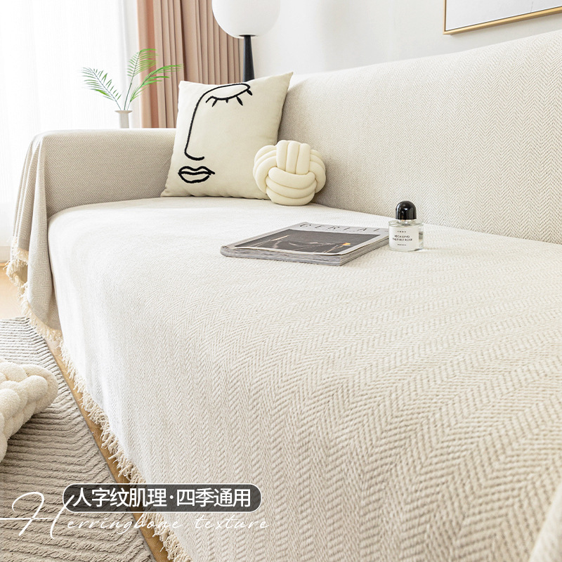 人字柄クリーム系ソファーマット四季通用高級感ソファータオル蓋布タオル全蓋万能カバー毛布