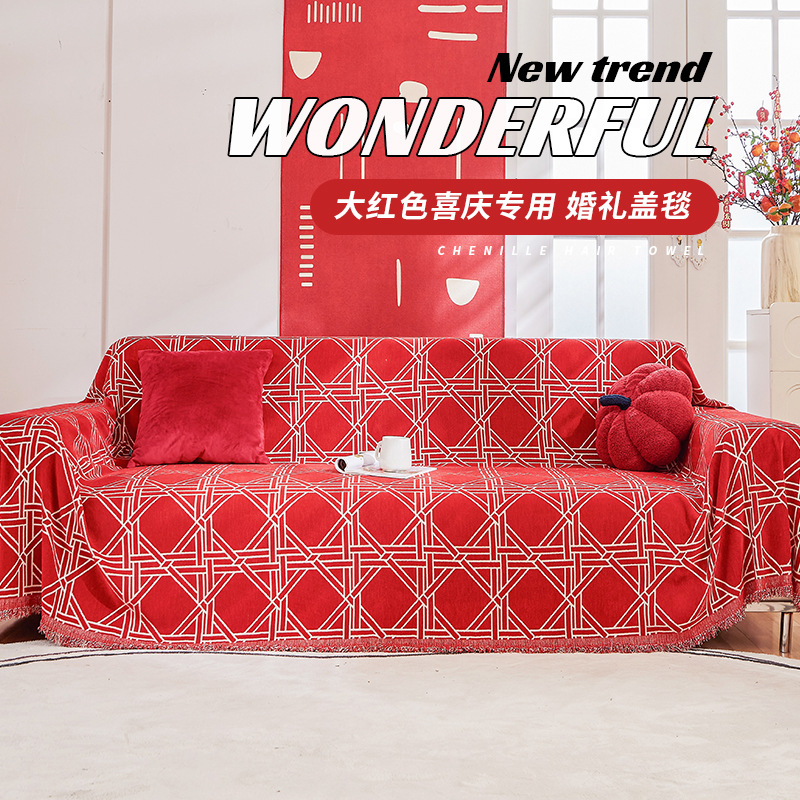 新年のお祝いにぴったりの赤いソファカバー、春節用の新しい赤いソファカバー、猫の引っ掻き傷防止ソファブランケット