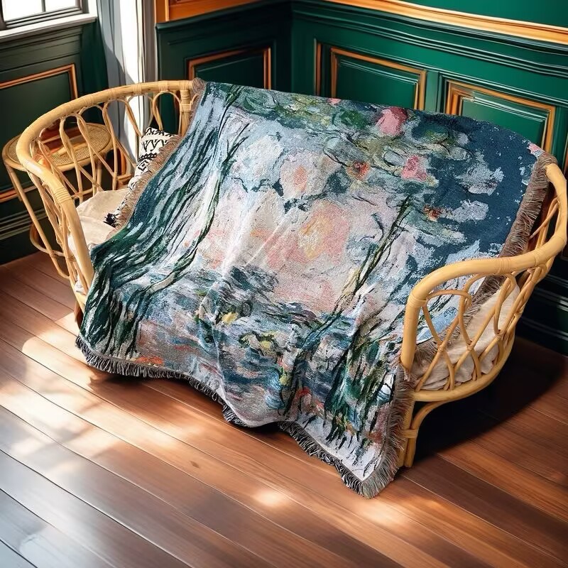クロスボーダー油絵風モネスイレンブランケットソファタオルカバーブランケットシングルソファソファクッション印象派タペストリーカバータオル