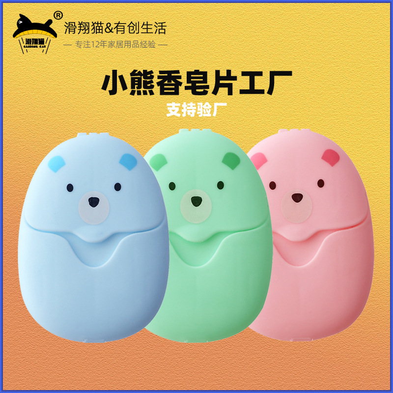 旅行用使い捨てクマ型石鹸タブレット 50個入り 箱入り石鹸紙 携帯用ハンドソープタブレット 石鹸タブレット 石鹸紙工場