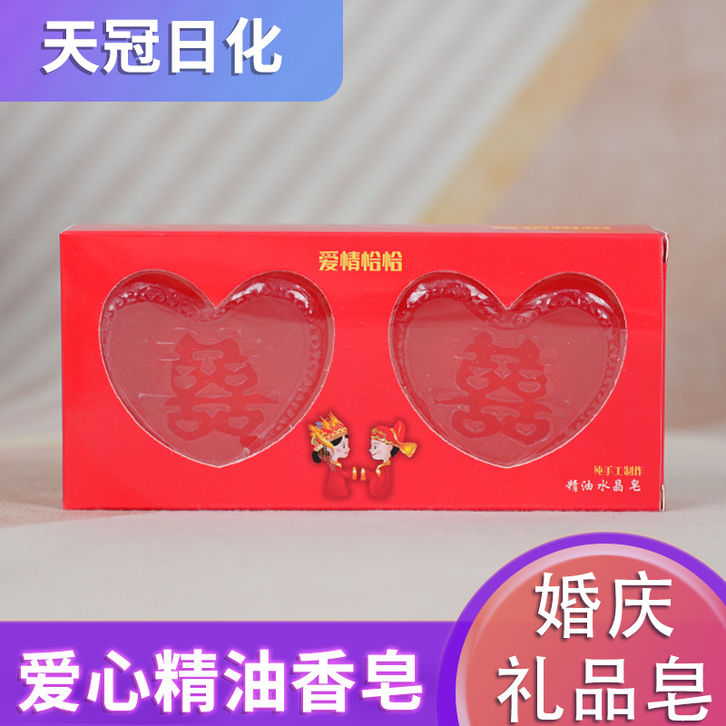 ラブエッセンシャルオイルソープ、結婚式のお祝いソープ、結婚祝いギフト、お土産ソープ、カップルハート型レッドダブルハピネスソープ