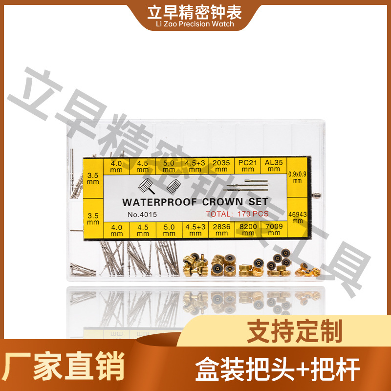 時計部品 箱入りエポキシ樹脂製リューズ クラウン 時計棒 修理部品 銅製金銀リューズ 4015
