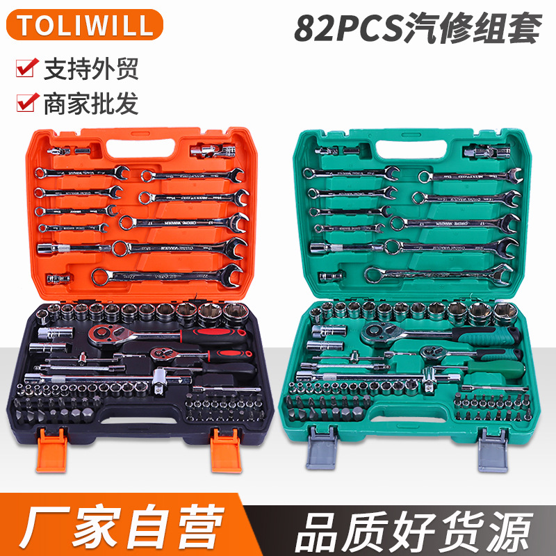 82点セットの自動車修理ツールセットのスリーブヘッドセットの自動車オートバイ修理修理工具箱