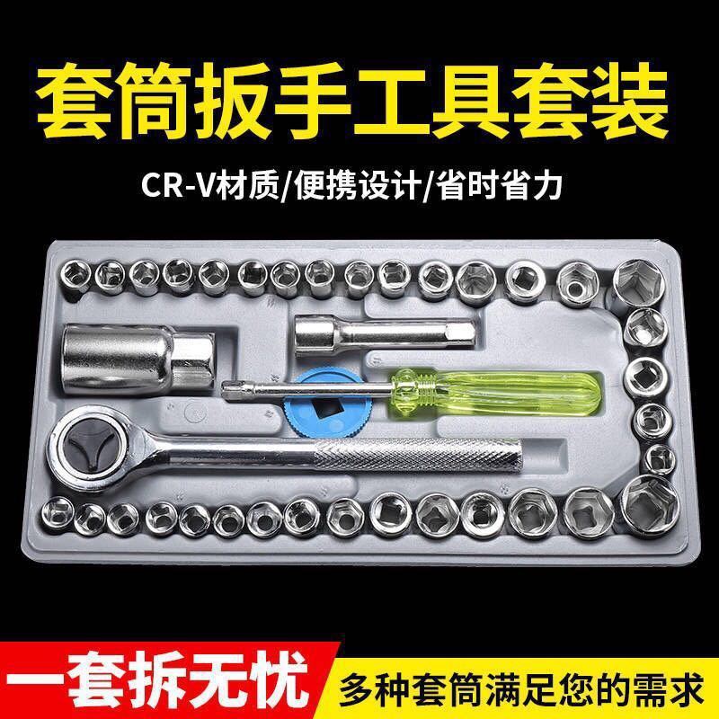 クロスボーダー爆金46点セット小飛ソケットラチェットレンチ自動車修理工具箱金物セット