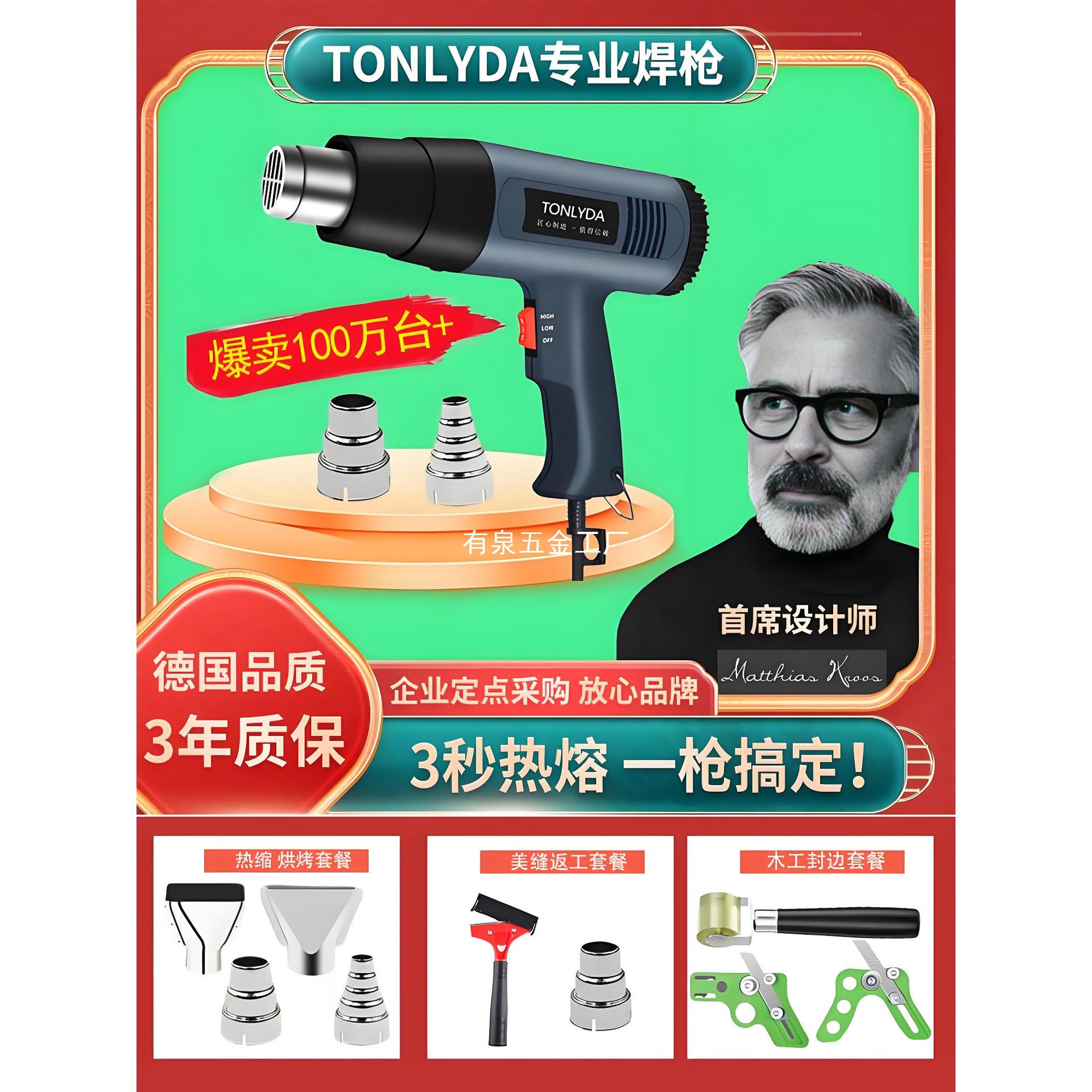 TONLYDA ホットエアガン シームフィラー リワーク木工エッジバンディングストリップ ヒーター ホットメルトシールフィルム 熱収縮温度制御乾燥ガン