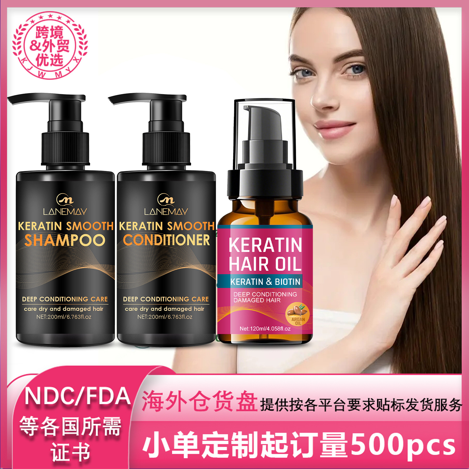 クロスボーダー強化と栄養補給ヘアオイルと汚れを除去ケラチンシャンプーとコンディショナーセット