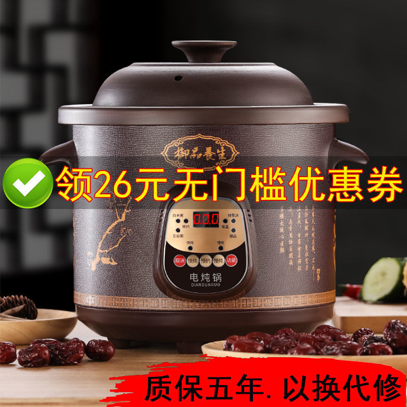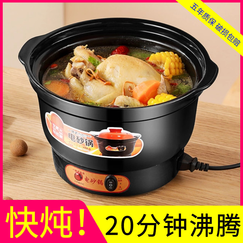 電気土鍋家庭用電気シチュー鍋陶磁器鍋煮粥神器紫砂白磁養生鍋3-6% 電気土鍋