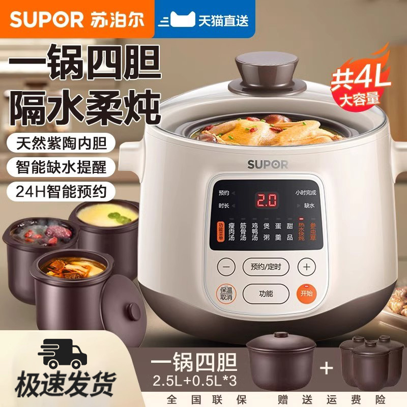 Supor 防水電気シチューポット家庭用ツバメの巣電気シチューポットセラミックスープとお粥健康全自動 25YC606