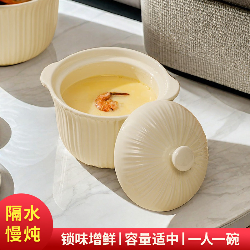 陶器製耐水シチューポット、蓋付き家庭用ツバメの巣卵スープカップ、シチューポット、寮の蒸し卵ボウル、スープシングルシチューポット