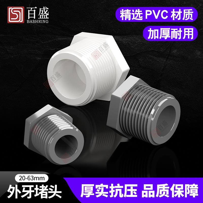 百盛聯塑PVC外糸プラグ外ねじ外歯プラグ水管部品外六角プラスチックプラグキャップ