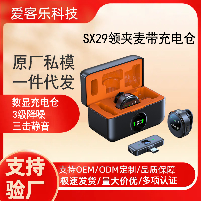 新工場の私模SX29無線クリップマイクは充電倉庫を持っています。