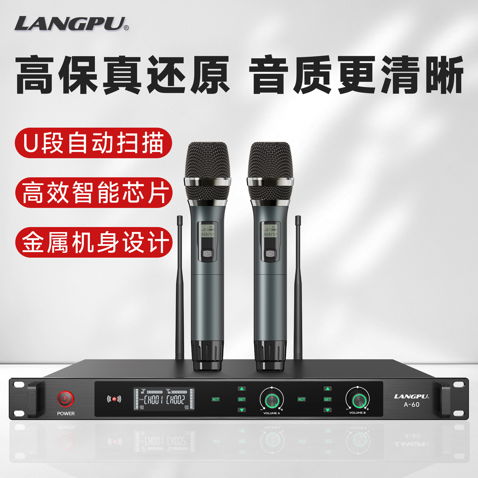 ワイヤレスマイク 1対2 赤外線同期 ステージプロ仕様 カラオケパフォーマンス ダイナミックマイク A-60 海外販売人気商品
