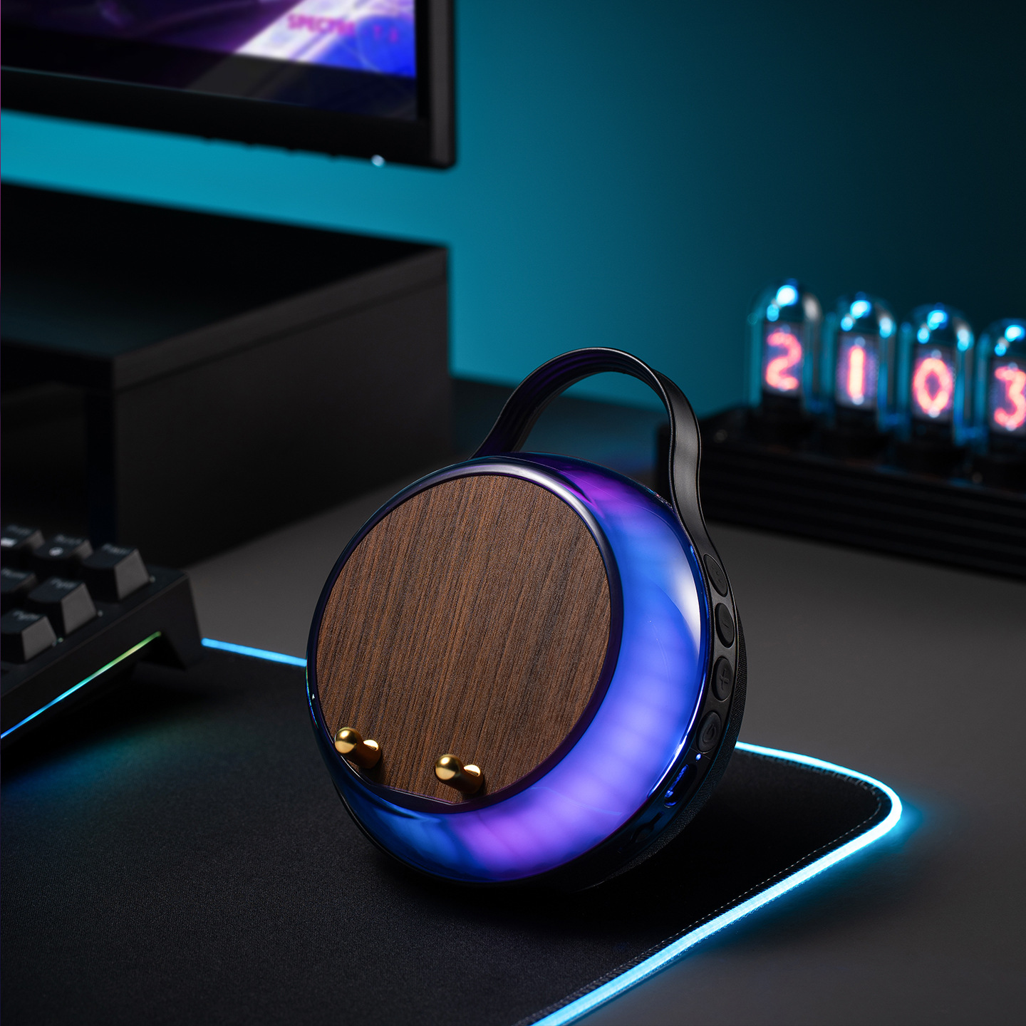 クロスボーダー新商品の霊光感応ブルートゥースオーディオ多機能創意無線スピーカーの携帯電話スタンドの雰囲気灯