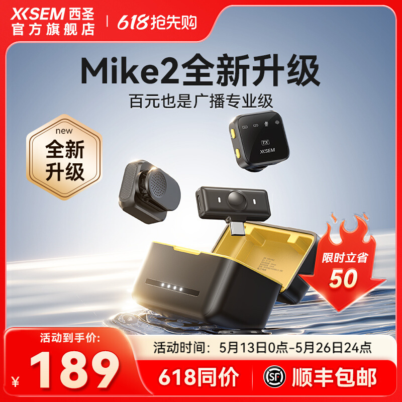 包郵便西聖Mike2新型無線マイク風クリップ式一モップ二直播撮影ビデオ録音専用受信