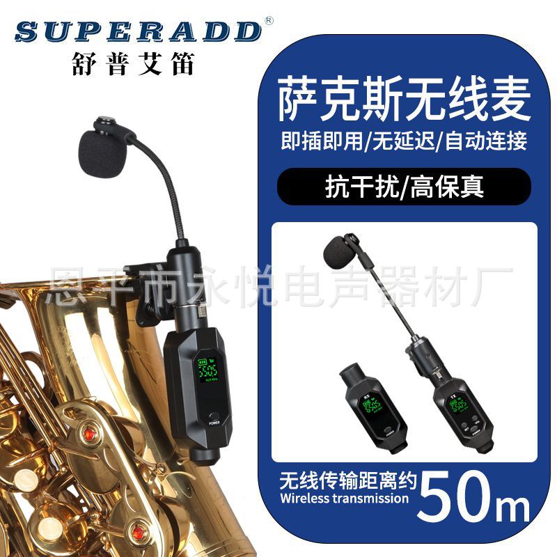 ワイヤレスサックスマイク、管楽器用ピックアップ、パフォーマンス用48Vマイク、コンデンサーマイク、長時間駆動コンデンサーマイク