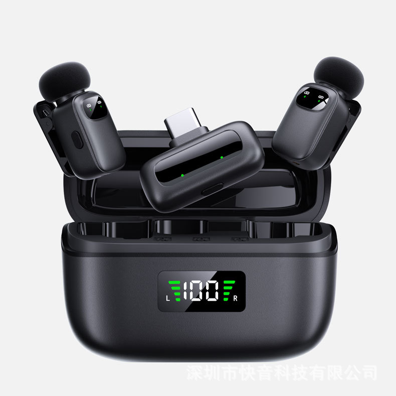 新モデル ワイヤレスラベリアマイク 携帯電話ライブ配信 録音 一対二充電ケース ノイズキャンセリングマイク