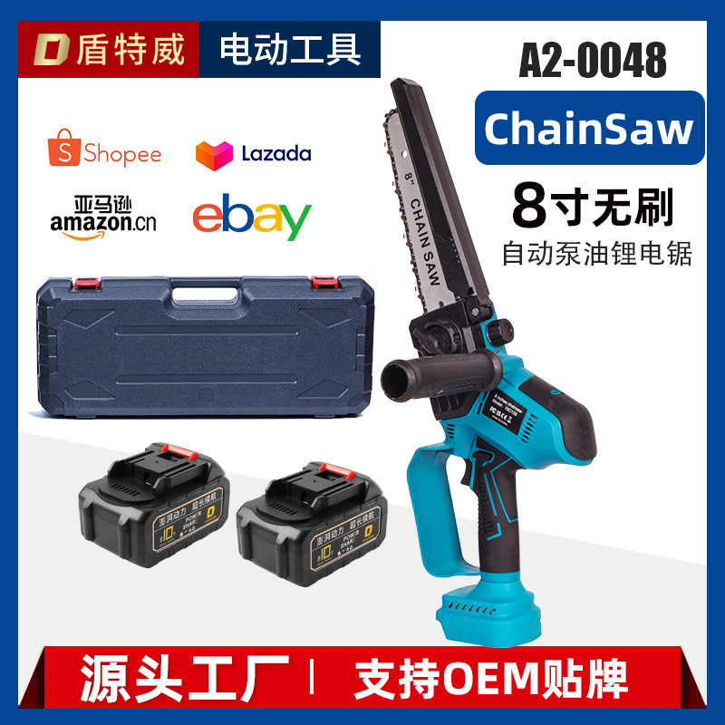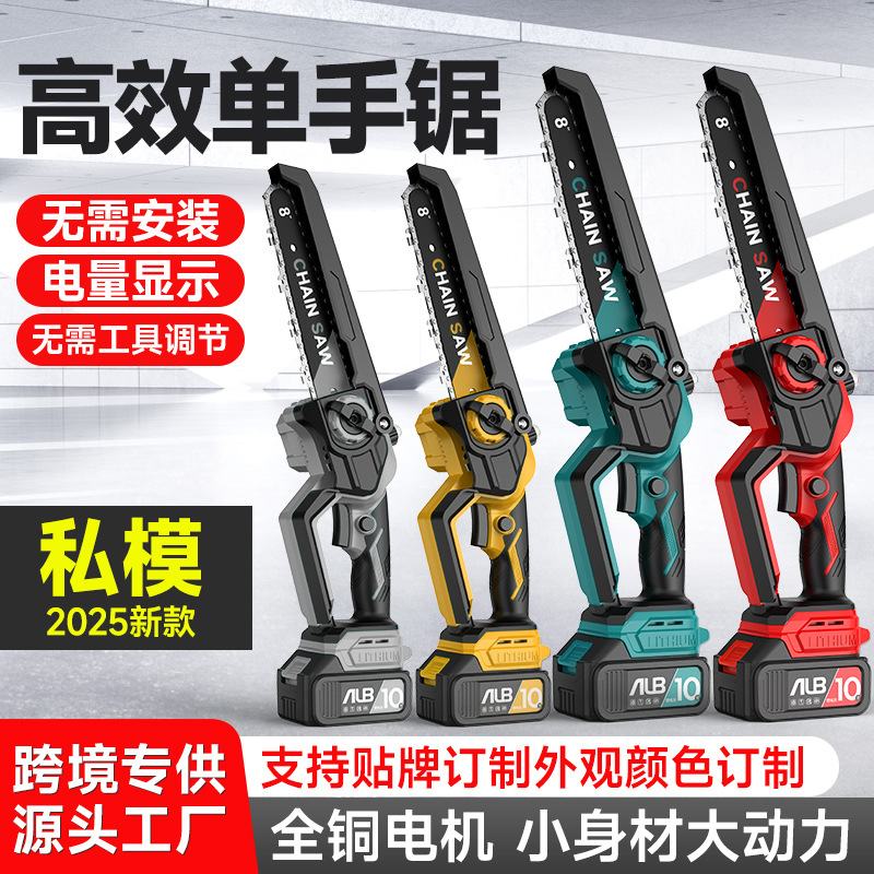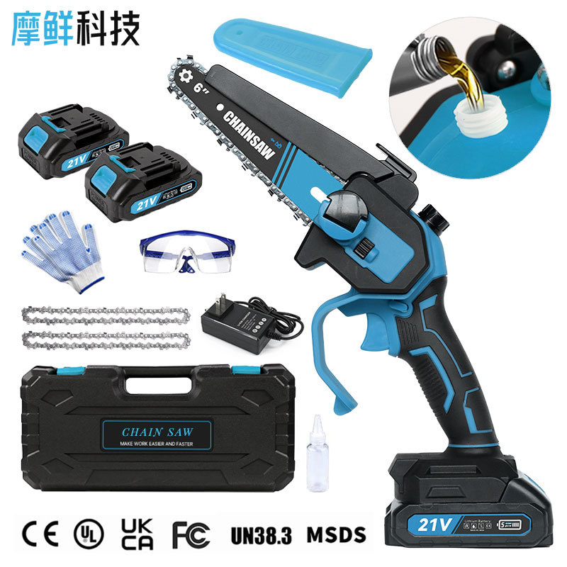 クロスボーダーリチウムチェーンソー6インチ8インチチェーンソー充電式小型屋外片手鋸園林伐採家庭用チェーンソー