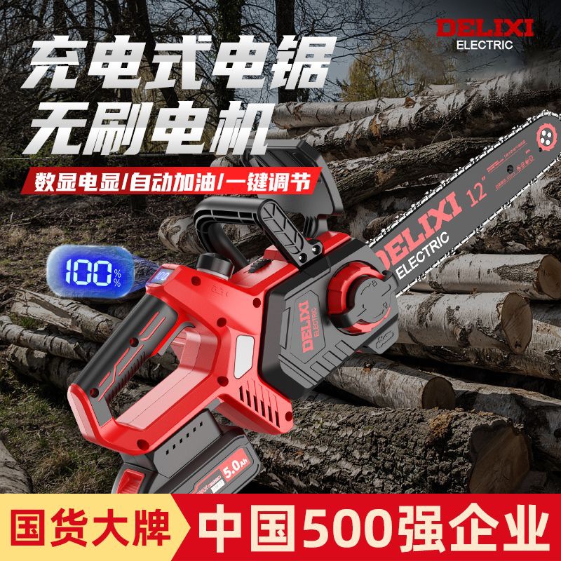 Delixi 電気チェーンソー リチウム電池ブラシレス充電式チェーンソー家庭用小型ハンドヘルドチェーンソー薪切断木の伐採のこぎり