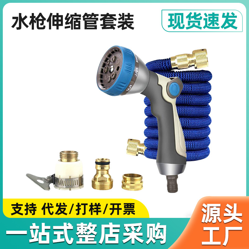 伸縮水道管洗車水鉄砲セット高圧家庭用ホースに花をやる工具ブラシで地面を洗う自動車用品のスプレーガン