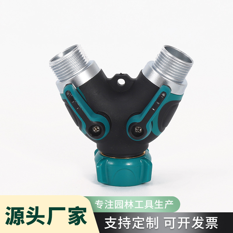 園芸灌漑用Y型亜鉛合金二重分岐接続部、調整可能な止水弁付きクイック接続水道管接続部