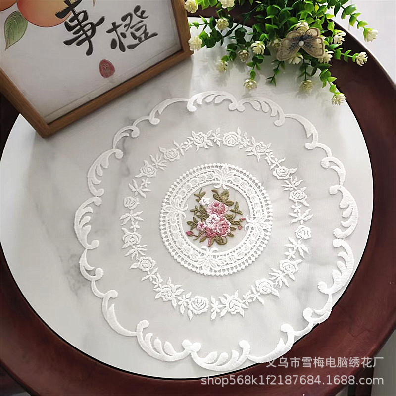 ヨーロッパ刺繍プレースマットラウンドダストカバーガーゼ写真小道具コーヒーテーブルダイニングテーブルベッドサイドテーブルマットインメーカーバッチ