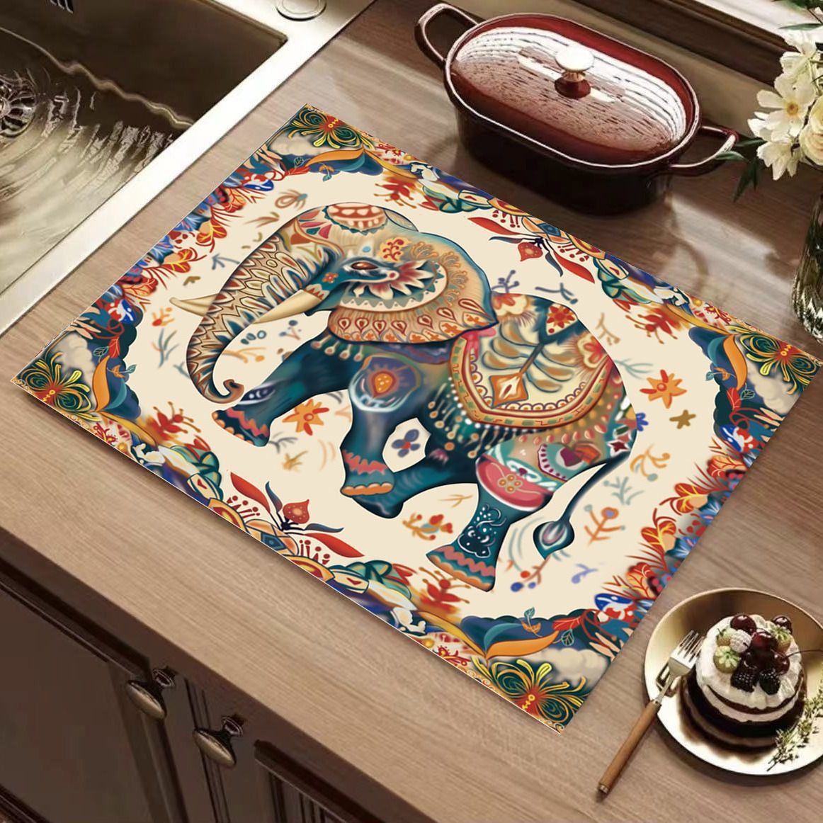 東南アジア風カウンタートップ無洗浄速乾断熱プレースマットタイ象キッチン排水マット家庭用食器水管理マット