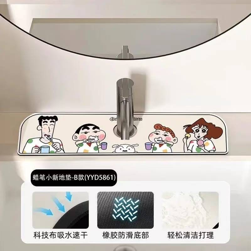 クレヨンしんちゃん キッチンカウンター 洗面台 蛇口マット 珪藻泥排水マット 防カビ・防湿・滑り止め・速乾マット