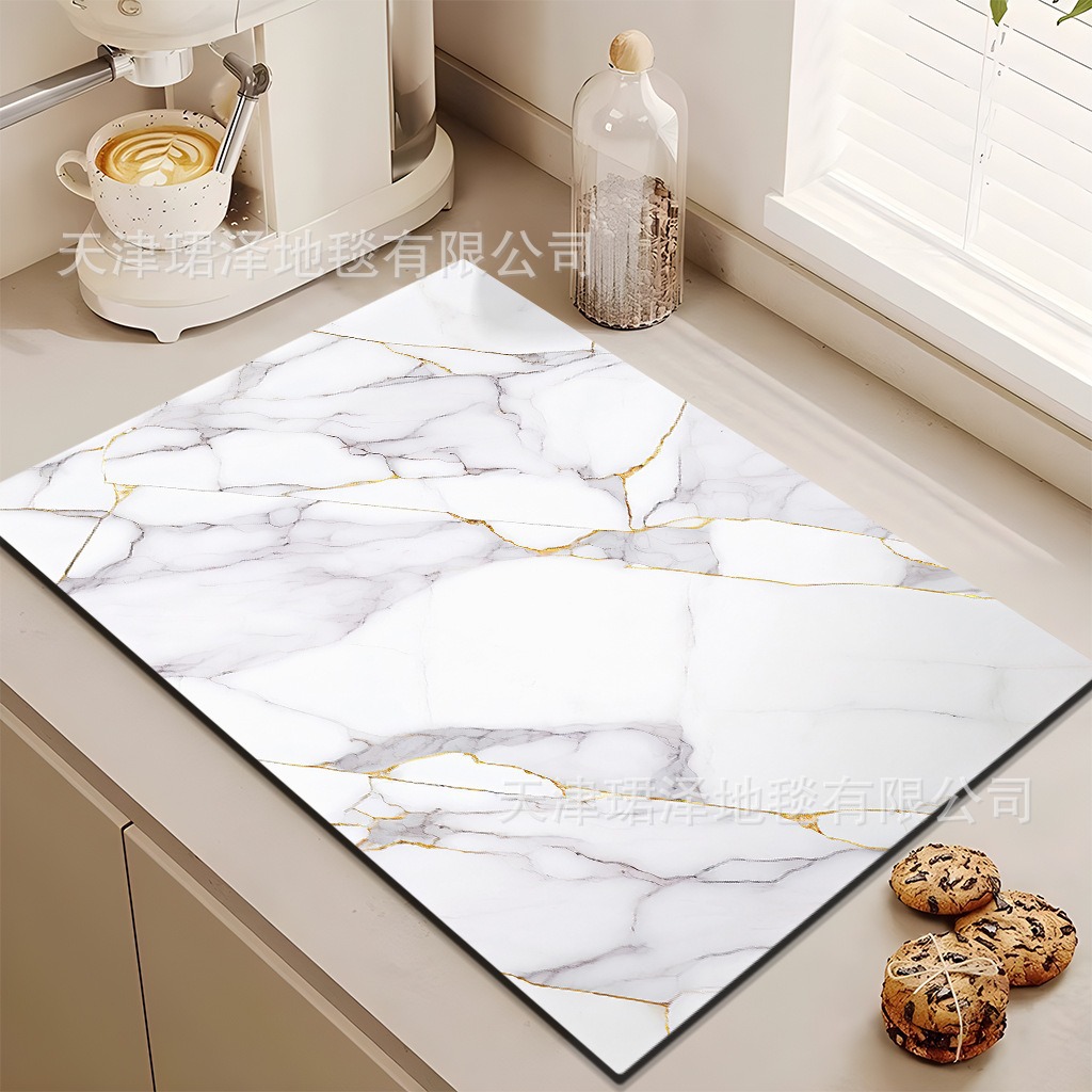 珪藻泥大理石紋台面水切りマット洗面台テーブルカウンター吸水マット食器乾燥マット断熱