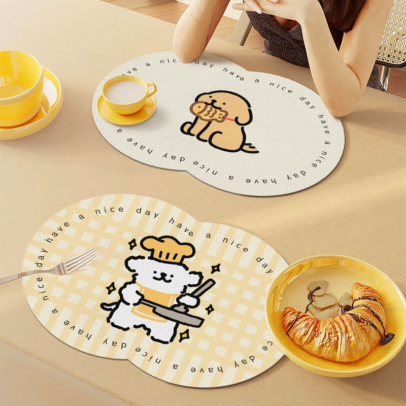 アニメ風の子犬の家庭用食器は熱を防ぐために、汚れに強いので、洗濯のないマットを拭くことができます。防水防油皮革のテーブルマットです。