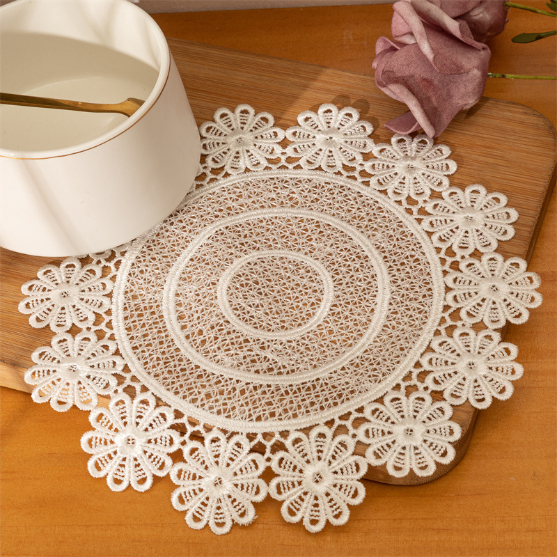 田园风レース刺繍ラウンドダイニングマットティーセット隔热マット布芸ホームデコレーション撮影道具インスタ风
