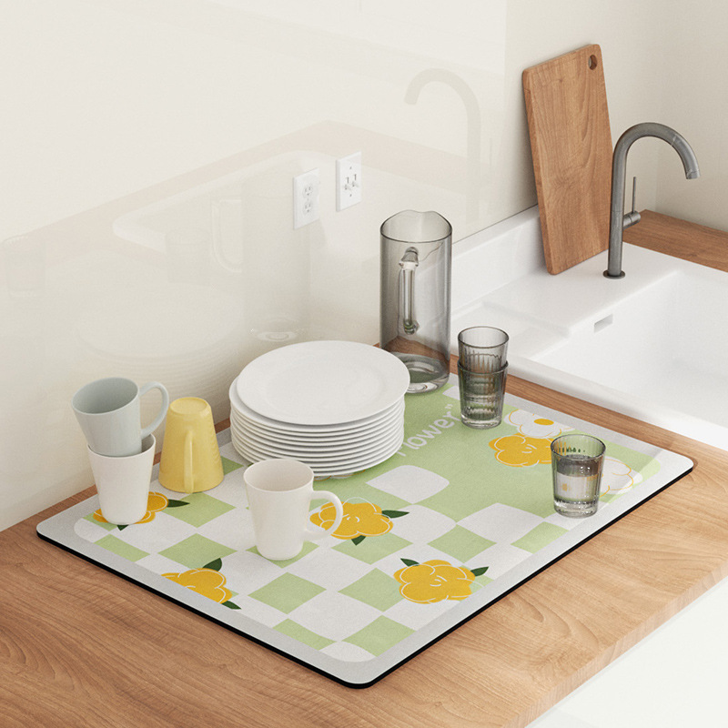 キッチンテーブル水切りマット珪藻泥速乾吸水テーブル食器乾燥滑り止め断熱保護マットカウンターマット