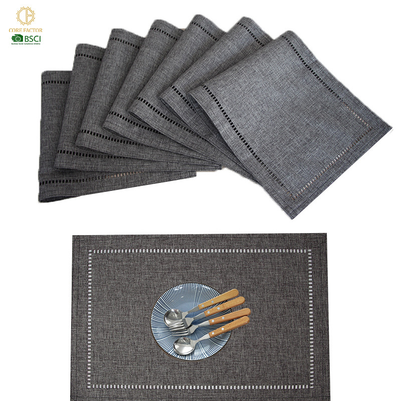 国境を越えた二重の厚手の食事マットは麻のように目を透かしたテーブルマットのポリエステルの皿マットの家庭用の純色のナプキンを代理します。