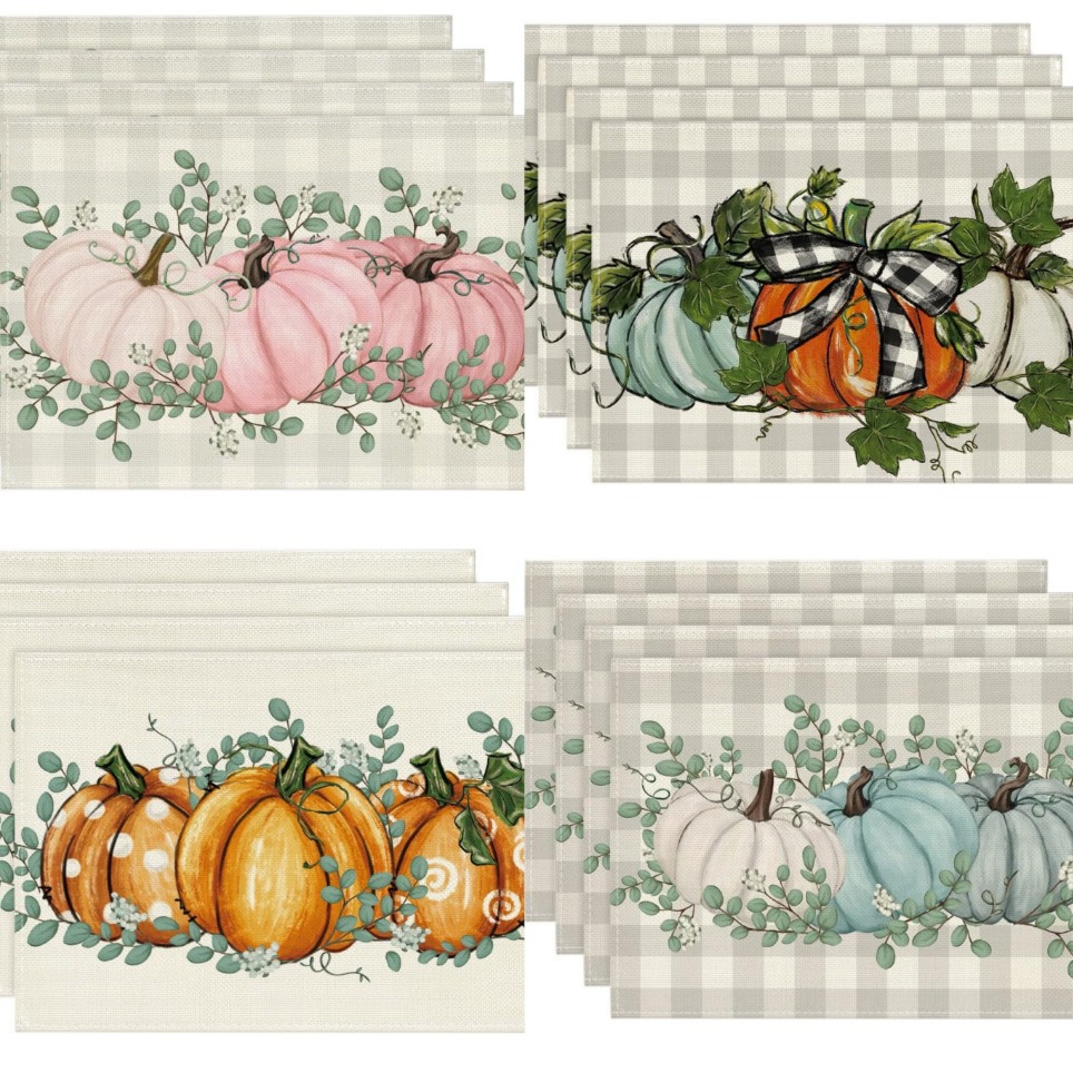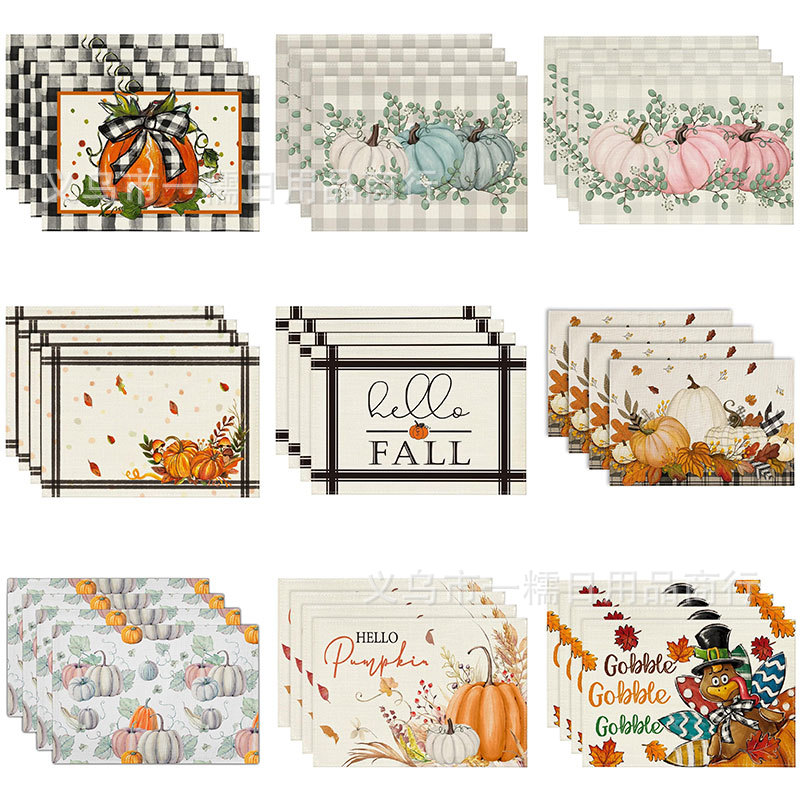 国境を越えたtemuが爆発した秋の収穫シーズンの感謝祭カボチャ亜麻プリントの食事マットレストランの断熱マットの家庭装飾