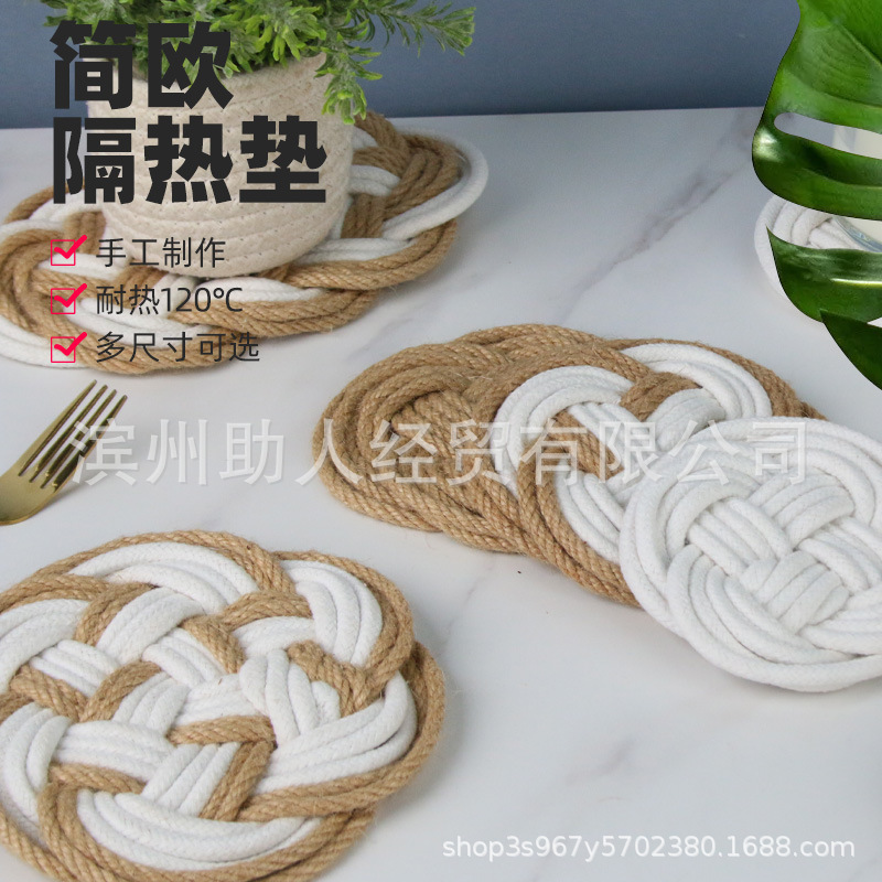 保温断熱マット手作り黄麻北欧綿着編みホームキッチンコースターテーブルマット断熱マット