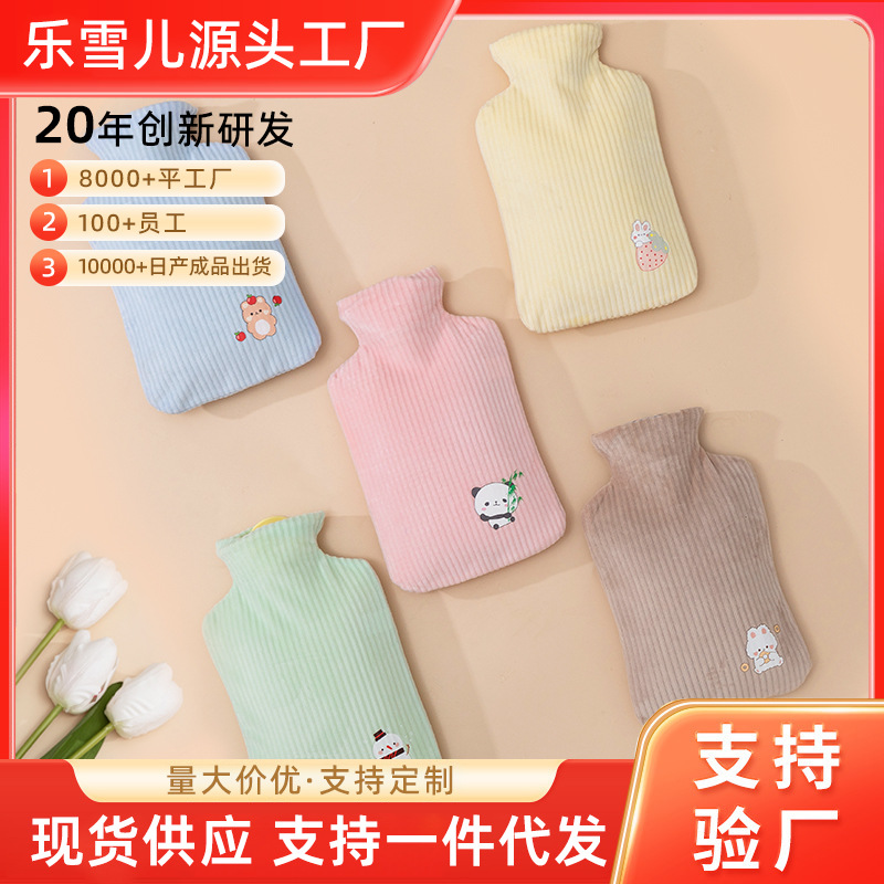 楽雪児湯たんぽ注水家庭用防爆ベルベットカバープリント灌水式暖手宝pvc湯たんぽ卸売り