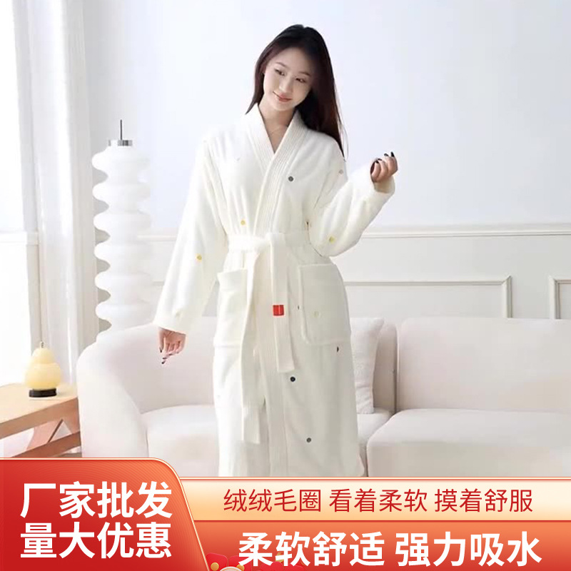新しいベルベットのバスローブは男女家庭用浴衣で長袖の入浴を吸水すると、大人の速乾を着て毛が厚くならない