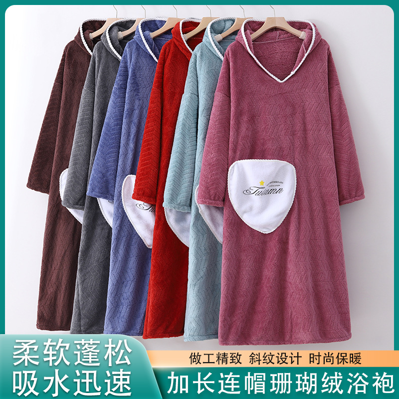 着られるバスローブ秋冬バスタオル女性家庭用コーラルフリース吸水ソフト速乾バススカート寝衣フード付きパジャマ